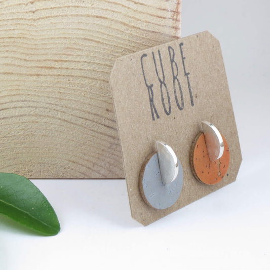 Cube Root Shape Shift Cork + Silver Stud Earrings