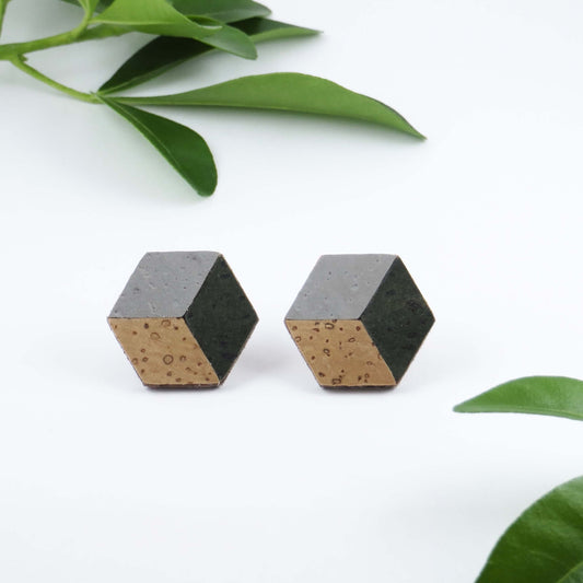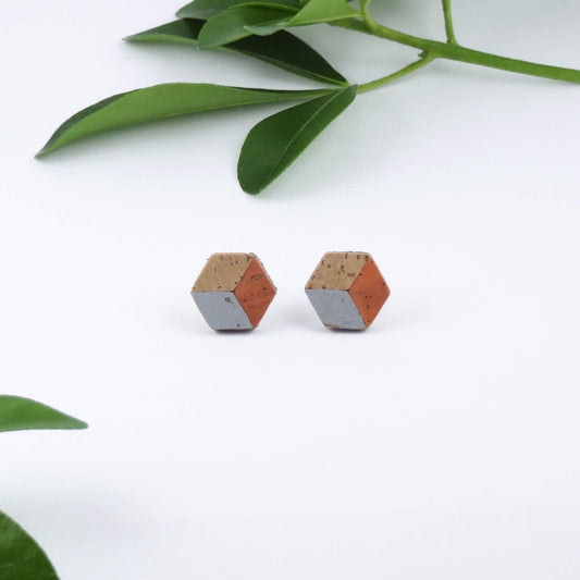 Cube Root Cork Geometric Small Cube Stud Earrings
