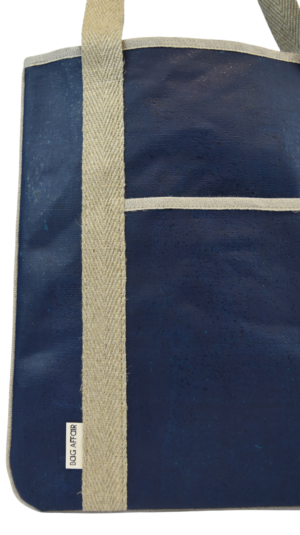 This carry-all tote bag is made with Bag Affair's new and innovative material called CORKonLINEN. This material is made by combining Portuguese cork on the outside and French linen inside for a soft touch and durable design. The material is resistant yet lightweight. The straps are made of linen as well as the piping.