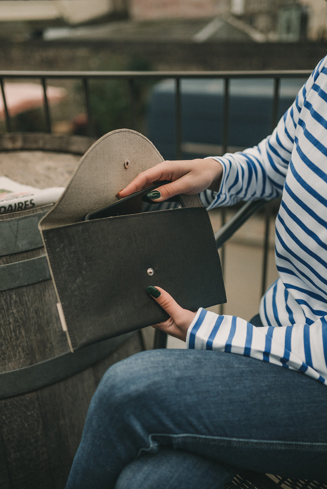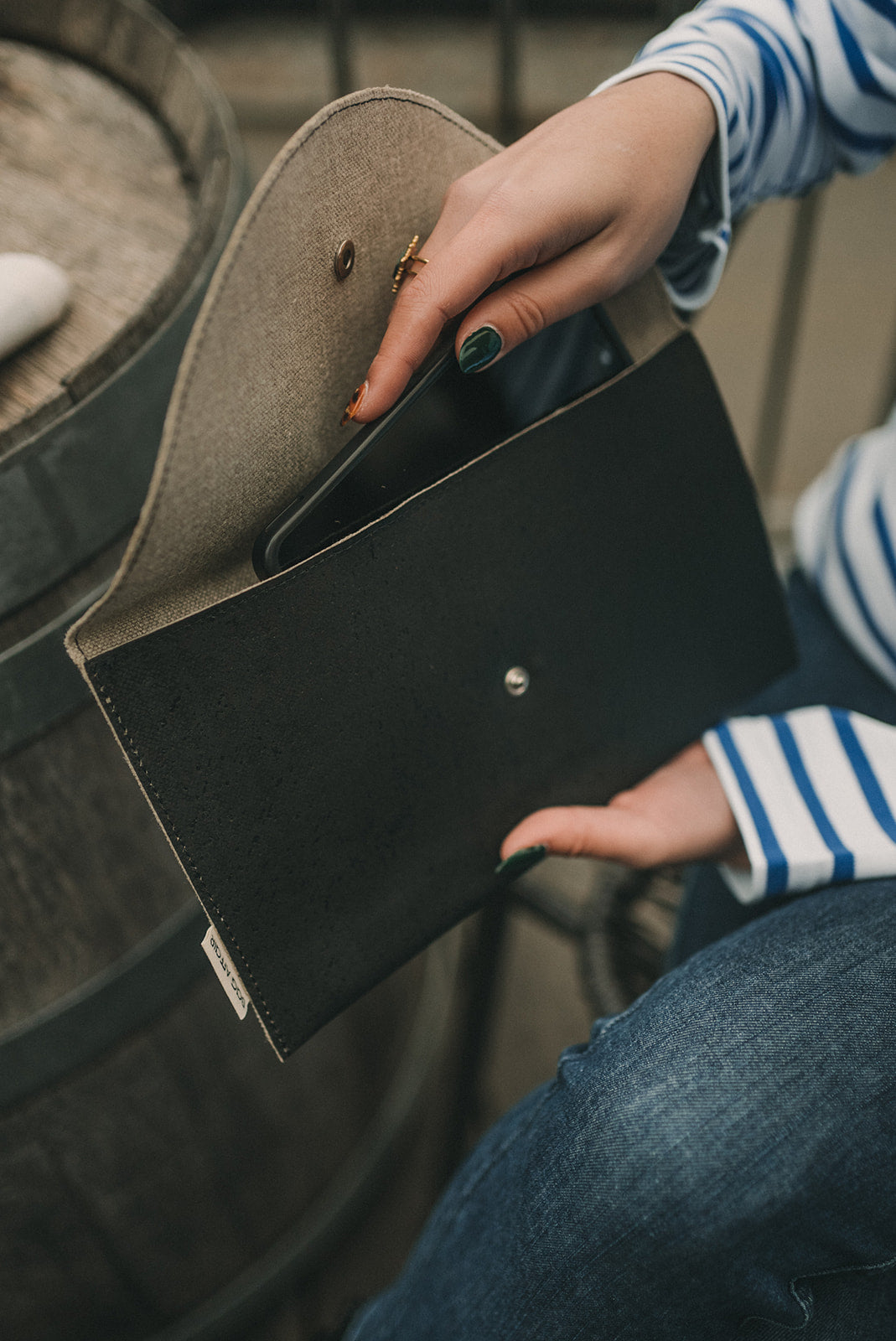 The Polly clutch is simple without being basic and can be carried alone or in a bigger handbag. It fits perfectly inside of the Bag Affair Bossy and Classy briefcase bags. Vegan and natural, this pouch is perfect for your daily routine or as a gift. A classical and pure design assures that the clutch fits with every kind of outfit, no matter if for business or for a casual day out. You can easily store your mobile phone, cards, money, and more inside. The inner linen assures that your belongings will be safe against the elements.