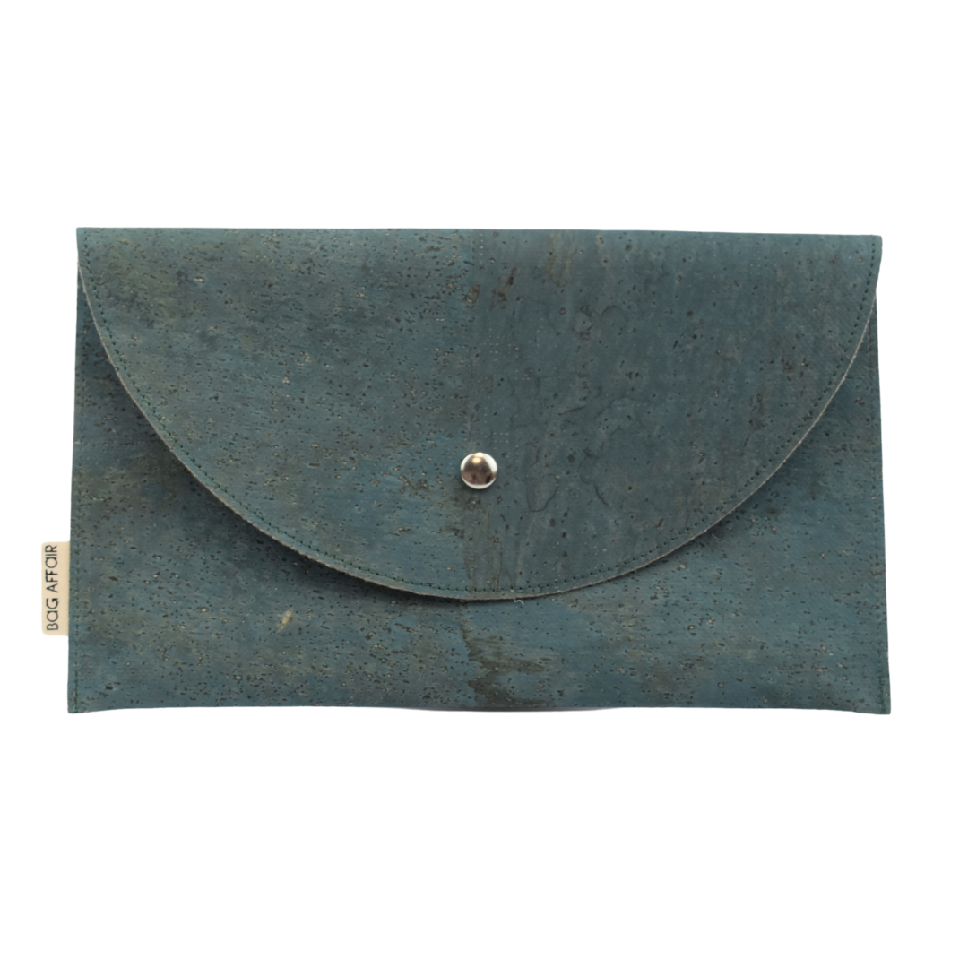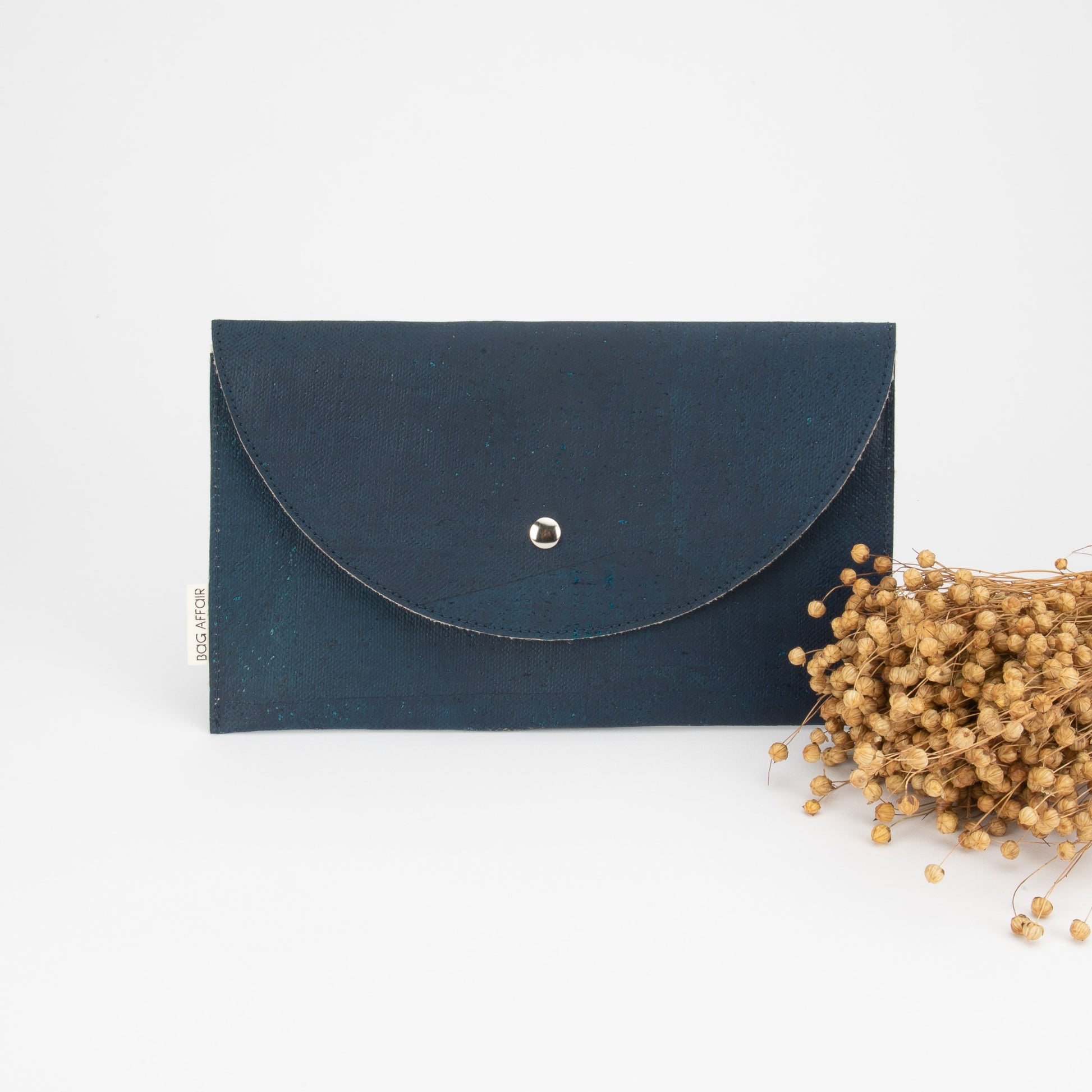 The Polly clutch is made from Bag Affair's new and innovative material called CORKonLINEN. This lightweight material is made by combining water-resistant Portuguese cork on the outside and French linen on the inside for a soft touch and durable design.